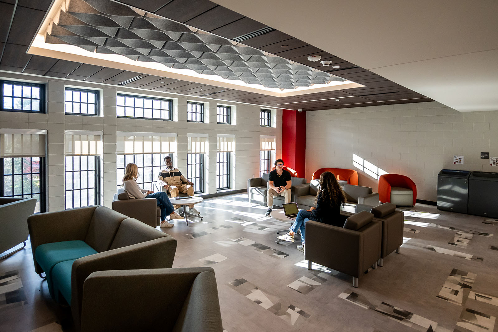 These residential spaces were built with very intentional, in-building access to high-demand student wellness and support resources like the Office of Counseling and Psychological Services (CAPS) and the Office of Residence Life. Creating this close proximity removes obstacles to wellness and support that can emerge with geographic distance.