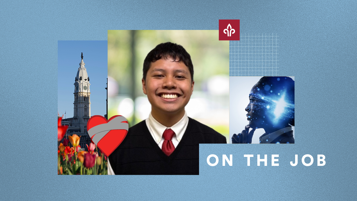South Philly native and political science major, Bryan Balmores-Jumarang, BA ’27, is spending his summer in the heart of Philadelphia, striving to make a difference. Working from Center City, Balmores-Jumarang is an intern in the Mayor’s Internship Program. He is part of the wellness team under the Department of Behavioral Health and Intellectual disAbility Services and can be found working on projects focused on digital wellness or connecting with local nonprofits.
