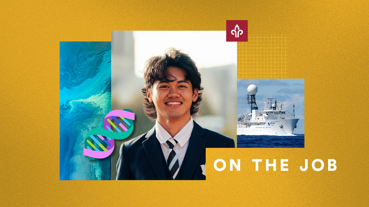 Sean Anjelo Maluchluw, BS ’27 a junior international relations major, had the opportunity to intern under the National Oceanic and Atmospheric Administration (NOAA), conducting ocean mapping in his home country, the Republic of Palau. Wanting to spend his summer outside of an office building, Maluchluw found out about the internship through the Palau Aquarium’s Facebook page and applied. His role included sailing in the Okeanos Explorer research vessel and mapping unexplored parts of the West Pacific region down to 5,000 meters in depth. Additionally, Maluchluw collected water samples, carefully filtered them, and sent them to the labs at Stanford University for further analysis to discover what types of deep-sea organisms were found at these depths.