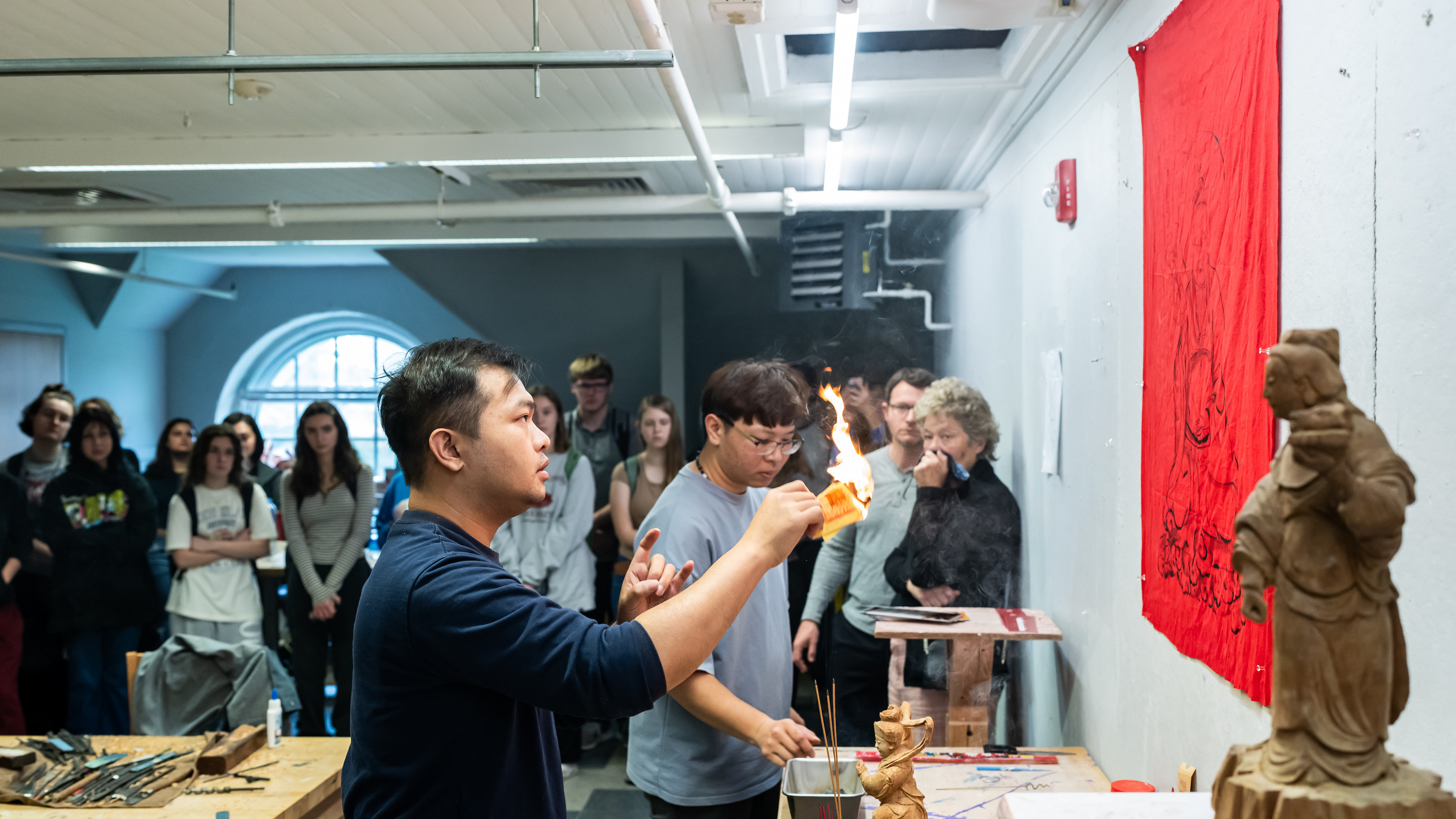 A prominent statue carver introduced Saint Joseph’s students to Taiwan’s religious culture during his two weeks as an artist-in-residence on Hawk Hill.