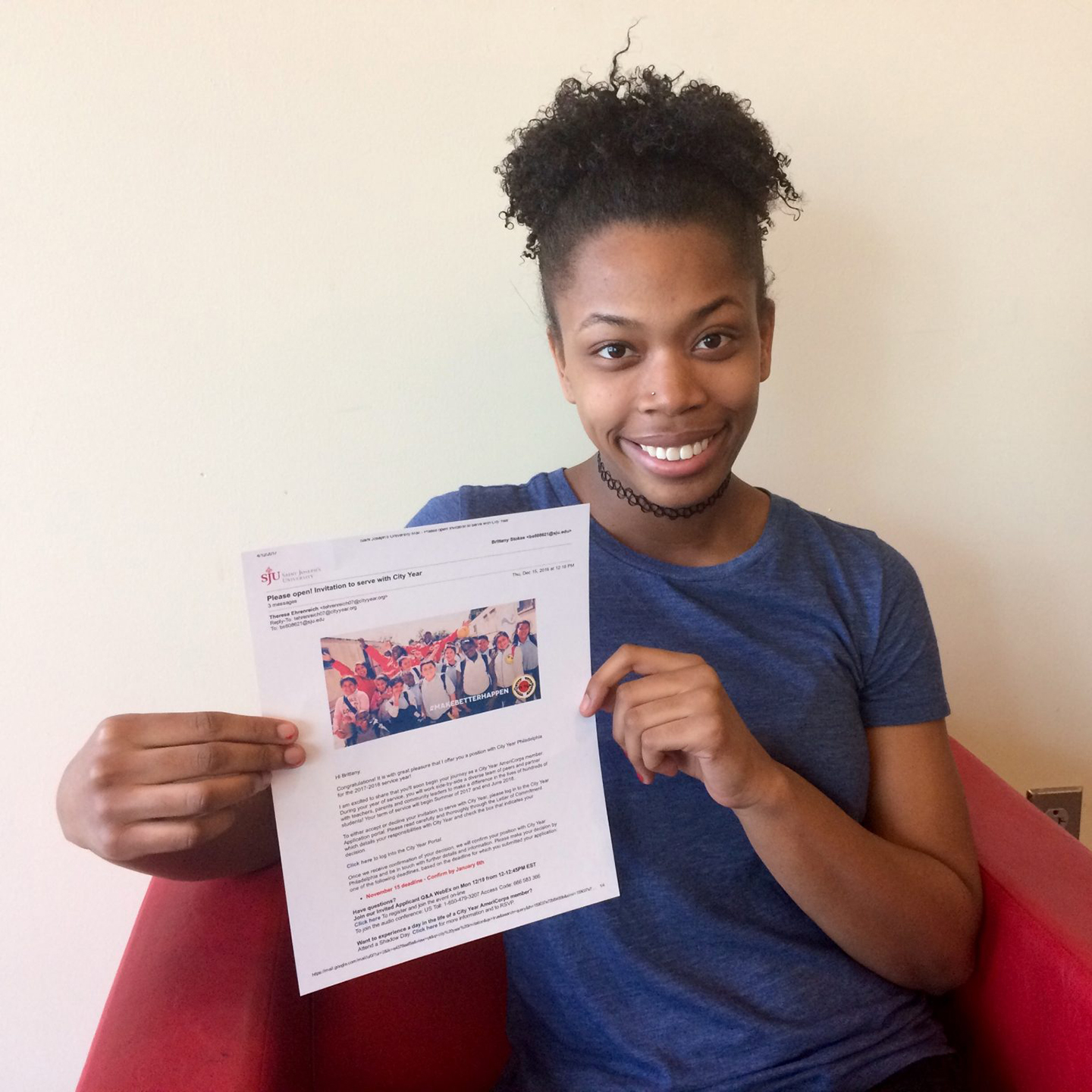 Brittany Stokes ’17, a criminal justice major from Philadelphia decided to take a gap year before law school to pursue an opportunity volunteering with City Year, working with children in under-resourced Philadelphia schools. Her mission is to enhance the educational experience of school children, work with teachers and run after-school programs.